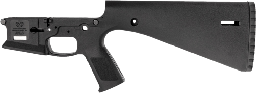 The WARP-15 is an AR15 style receiver made from injection molded glass filled nylon incorporating the buttstock, buffer tube, pistol grip, and trigger into the receiver design as integral components. The WARP-15 Receiver draws inspiration and experience from earlier monolithic polymer receiver designs while incorporating modern manufacturing techniques and features for the current marketplace. This manufacturing process offers several advantages Lighter weight compared to similarly configured receivers Lower cost to similarly configured receivers Increased production speed and elimination of sub components through integration especially important during high demand cycles in the market. Features Include: Compatibility with most common AR15 uppers and lower parts kits Flared magwell to make reloads under stress easier to perform. A1 Length 13” Length of Pull (LOP) Buttstock to fit a wide range of shooters MLOK Slots at rear of stock for sling attachement points or run a strap through it for simple sling attachment Holes at the front of the stock for QD socket inserts for more sling attachment options Wraithworks Exclusive Heavy Texture Pistol Grip Wraithworks Exclusive injection molded buttplate w/ trap door Technical Information The WARP-15 receiver uses a Carbine buffer and spring The Take Down and Pivot Pins have the detents built into them eliminating the spring and detent holes in the lower increases durability. The Selector spring and detent load from the top, then the selector slides over it. The buffer detent (should you choose to use it) is held in place with a 5/64” Roll Pin The WARP-15 is compatible with all Mil-Spec Fire Control Groups The WARP-15 is compatible with cassette style match triggers included the KE Arms DMR and SLT units. The retention system of these triggers with D-Clips in the bushings to retain the fire control pins makes them better suited for use in the WARP-15 than other designs that require captured pins. The hammer pin area is wider for durability Standard AR15 hammer pins can still be used but we offer a longer hammer pin for customers preferring a flush pin for aesthetic reasons
